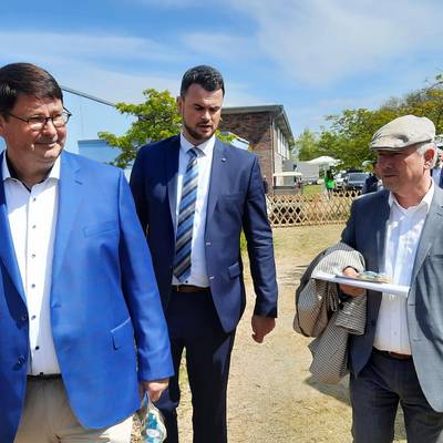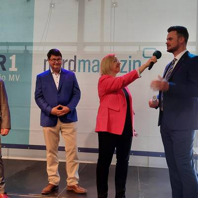Heute (5.5.) wurde die Hanseschau am Bürgerpark in Wismar eröffnet! Landrat Tino Schomann und Wismars Bürgermeister Thomas Beyer standen zur Eröffnung mit auf der Bühne und wurden von Dörthe Graner interviewt. „Ich freue ich, dass die Hanseschau nach der Pandemiepause wieder starten kann. Schon das ist ein Erfolg für die Veranstalter nach dieser schweren Zeit. Dass am ersten Tag schon so viele Besucher kommen, ist umso erfreulicher.“, so Schomann auf der bereits zur Eröffnung gut besuchten Messe. Neben Bundestags und Landtagsabgeordneten nahm auch Kreistagspräsident Thomas Grote an dem anschließenden Rundgang teil. Dabei besuchten die Politikvertreter auch den neuen Messebereich „Innovationsforum MV“: In Halle 4 stellen sich am 5. und 6.Mai junge, innovative Unternehmen aus der Region den Besuchern vor.