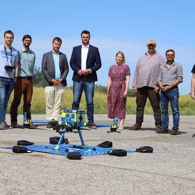 Sein Kollege Johannes Nowack kümmert sich speziell um die ASP-Drohne und deren Ausstattung. Vor Ort erklärte er den anwesenden, dass die Drohne noch viel mehr Anwendungsmöglichkeiten hat: