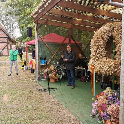 Um das zu feiern, übergab die Landfrauengruppe Maurine-Radegast auch gleich die diesjährige Erntekrone an Landrat Tino Schomann. Sie soll wie üblich einen Ehrenplatz am Verwaltungsstandort in der Malzfabrik in Grevesmühlen erhalten. Das große Kreiserntefest mit Festumzug soll erst wieder im kommenden Jahr wieder stattfinden.