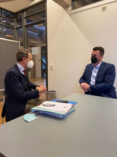 Landrat Tino Schomann und Matthias Crone treffen sich in Wismar