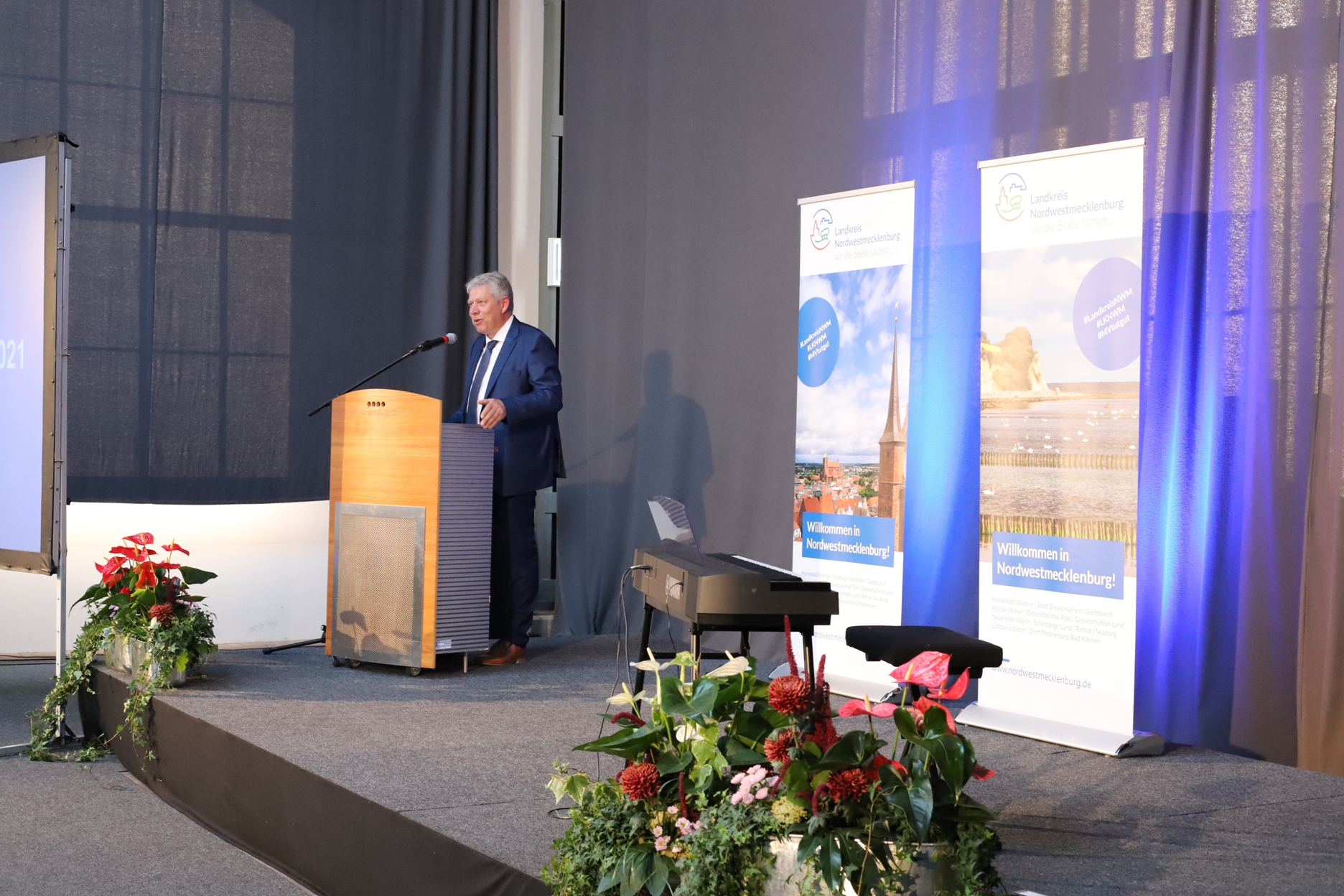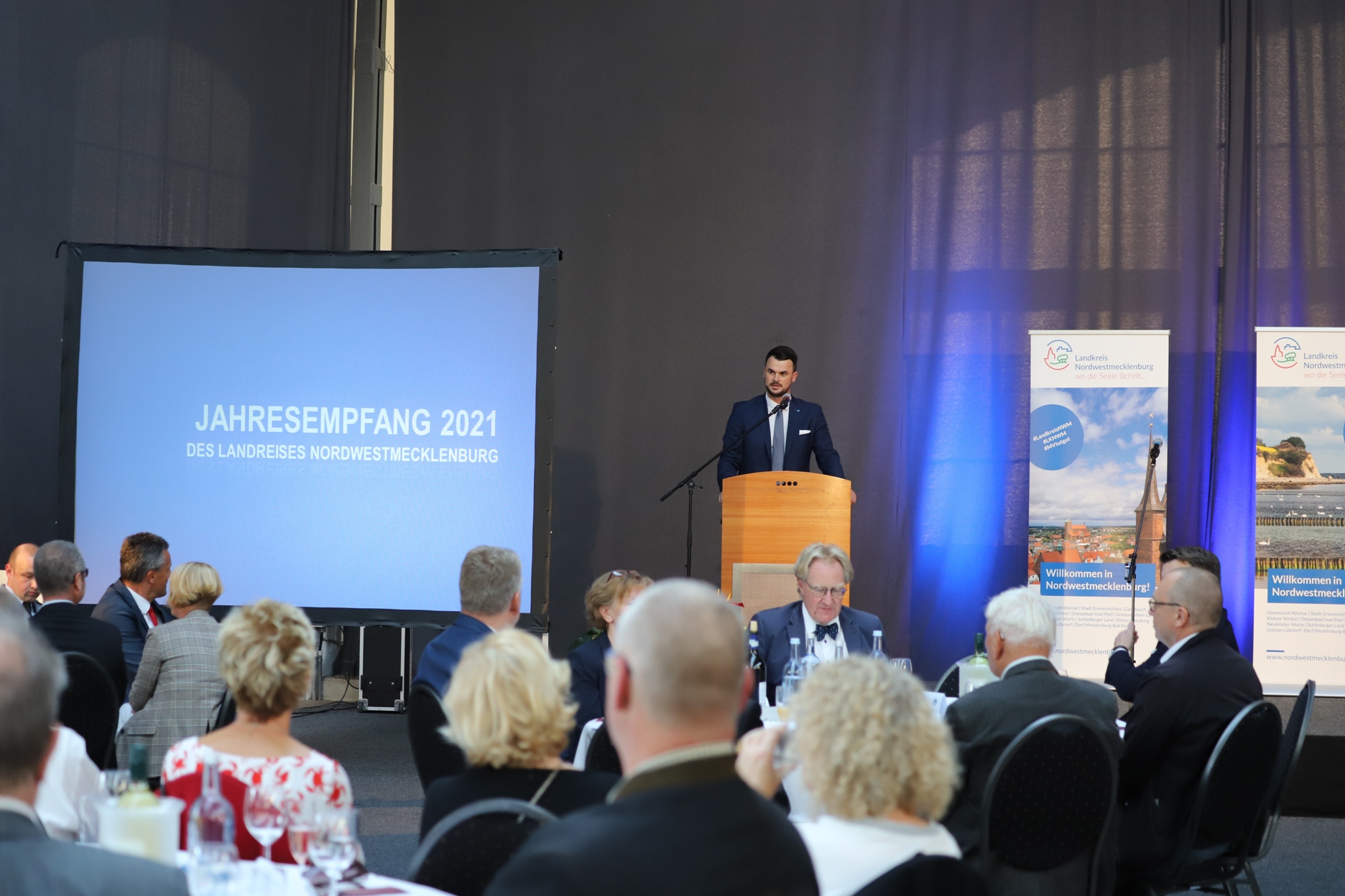 Am 31. August fand in der Wismarer Markthalle der Jahresempfang des Landkreises Nordwestmecklenburg statt – dort hatten bereits 2020 unter verschärften Pandemiebedingungen die Ehrungen stattgefunden. Weil die Halle sich besonders gut für die Einhaltung der nötigen Hygieneregeln bewährt hatte, entschied man sich in diesem Jahr für eine erneute Nutzung des Standortes in der Kreisstadt.