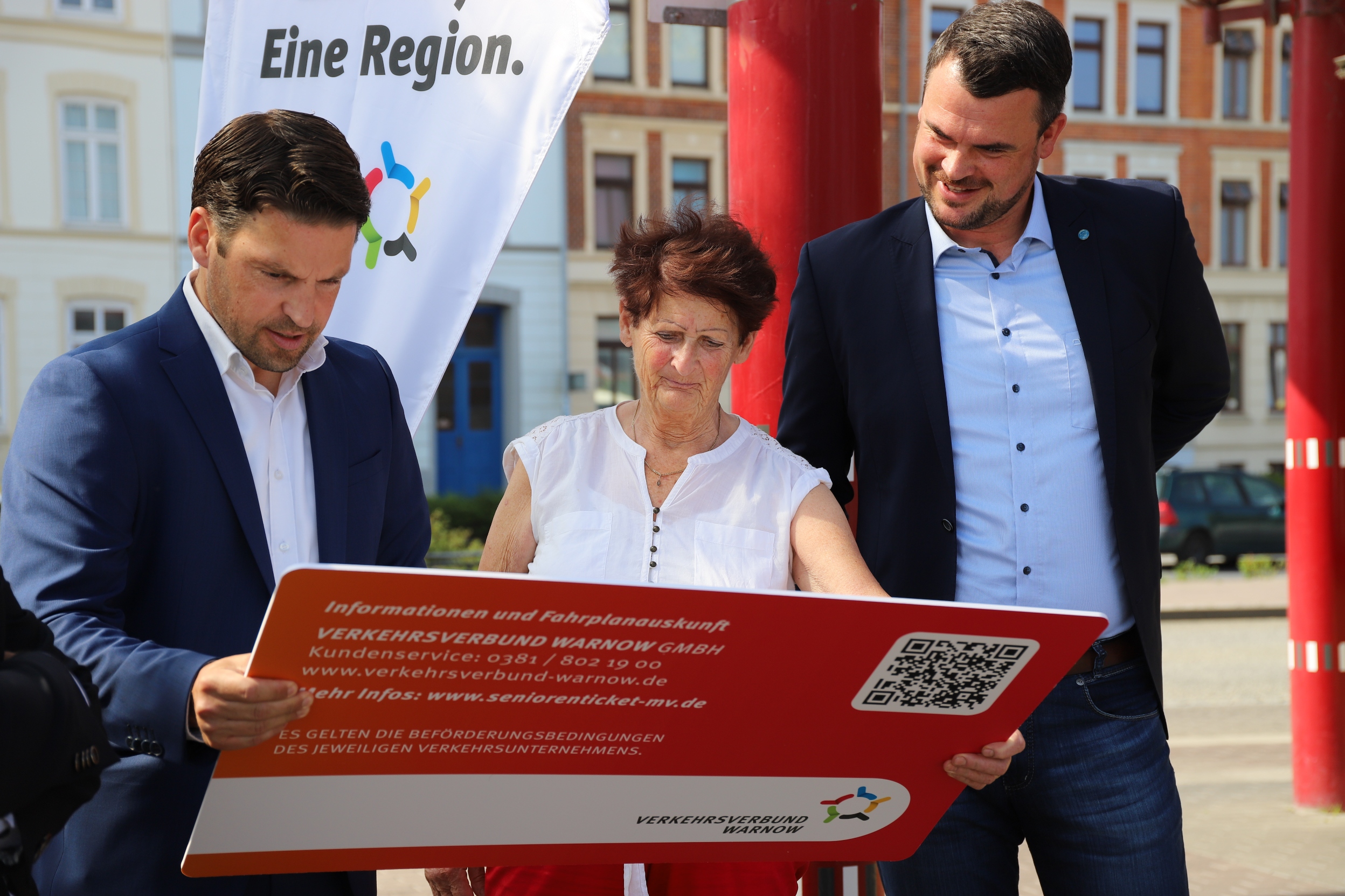 Begleitet wurde Lettau von Landrat Tino Schomann und von Stefan Wiedmer, Geschäftsführer des Verkehrsverbunds Warnow, der das Ticket federführend für unser Bundesland entwickelt hat.