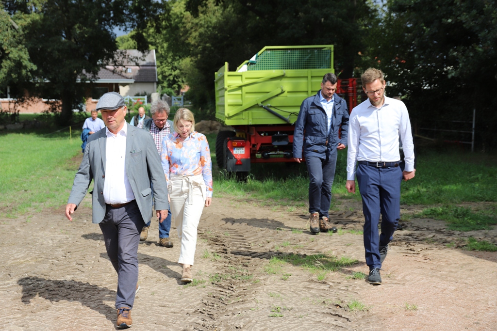Seit 2008 unterhalten sie Ihre 1.300 Hektar als reinen Ackerbaubetrieb zum Beispiel für Zuckerrüben. Mit dem Landrat und den anderen Besuchern sprachen sie auch über die zunehmenden Hürden und bürokratischen Aufwand, die neue Gesetzgebungen mit sich bringen. „Wir wollen natürlich unseren Beitrag leisten und manches wurde sicher in der Vergangenheit auch falsch gemacht. Ein komplettes Pflanzenschutzmittelverbot, wie es weiten Teilen von NWM droht, würde aber große Probleme bereiten.“, so Lennard Renzow, der den Hof im Sommer übernommen hat.