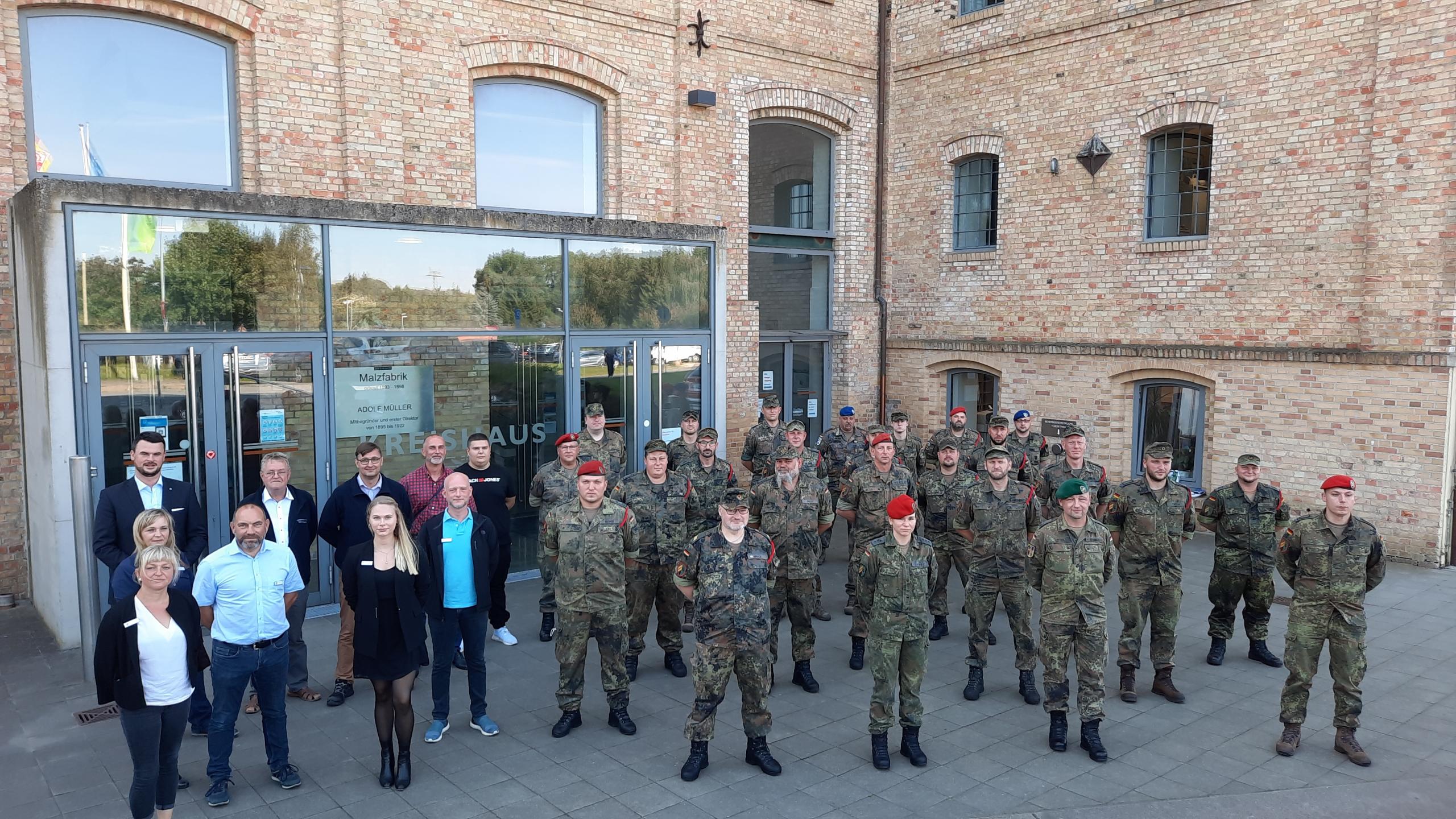 Am Donnerstag (9.9.) traten 22 Bundeswehrangehörige gemeinsam mit kommandierenden Offizieren im Kreistagssaal in der Malzfabrik auf Einladung von Landrat Tino Schomann zu einem besonderen Termin an.
