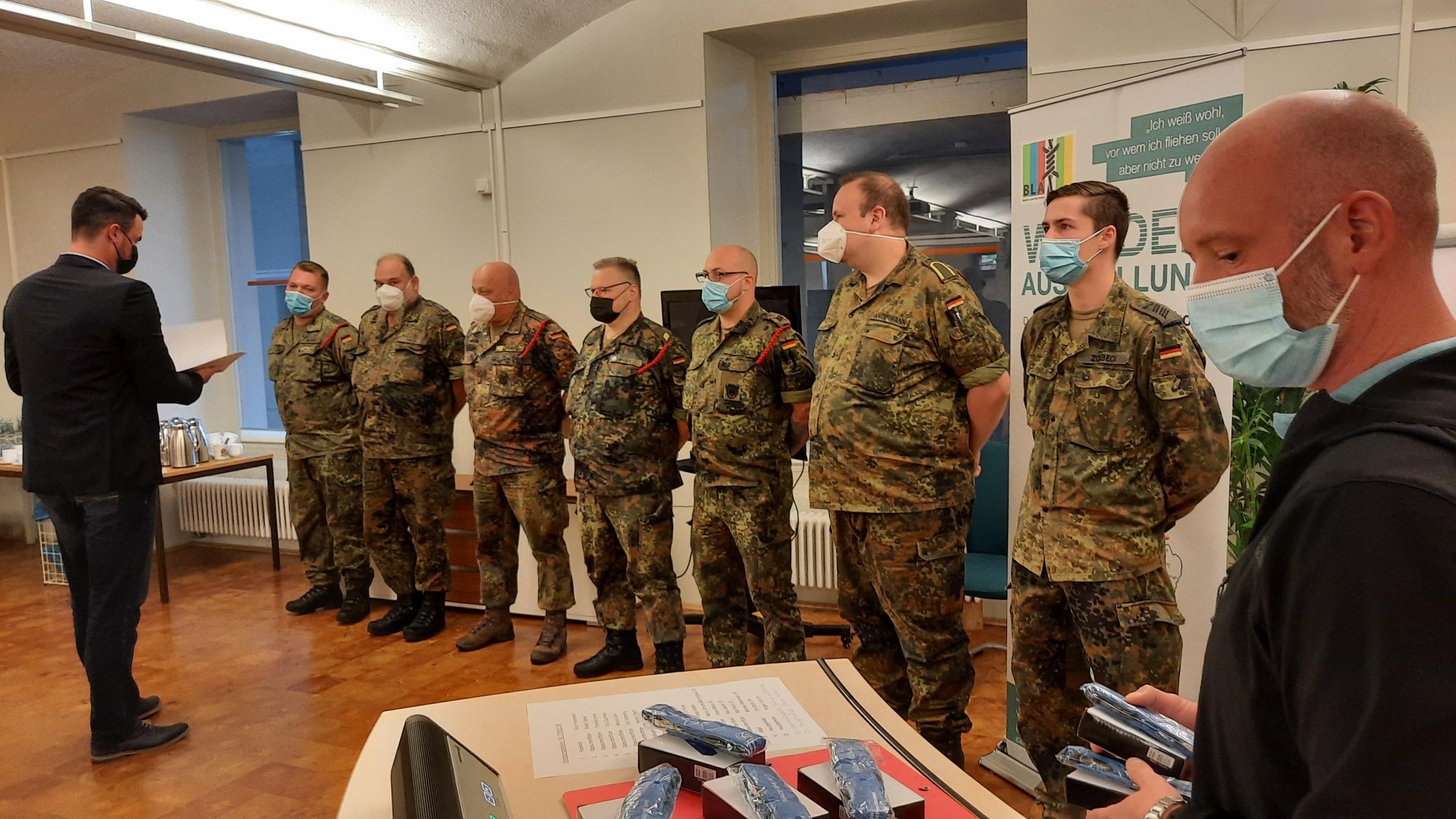 Und Oberstleutnant Timo Bogolowski kommentierte den Einsatz seiner Leute so: „Die Pandemie hat uns als Soldaten noch einmal deutliche gemacht, dass wir Staatsbürger in Uniform sind, ein Teil der Gesellschaft. Wir haben gerne unseren Beitrag auf dem Weg in die neue Normalität geleistet.“