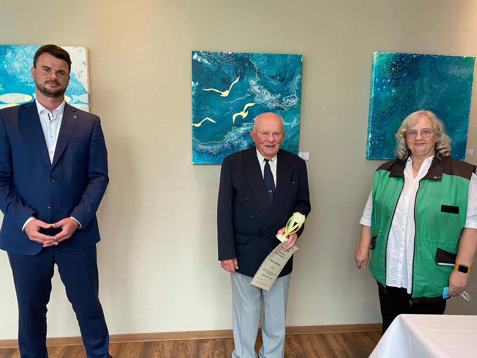„Die Verkehrswacht setzt sich mit viel ehrenamtlicher Arbeit dafür ein, dass unsere Straßen sicherer werden. Ich finde es gut, dass man auch mal denen Danke sagt, die seit so vielen Jahren vorausschauend und mit Rücksichtnahme unsere Straßen befahren.“, so Landrat Tino Schomann, der Anton Herrmann persönlich gratulierte.